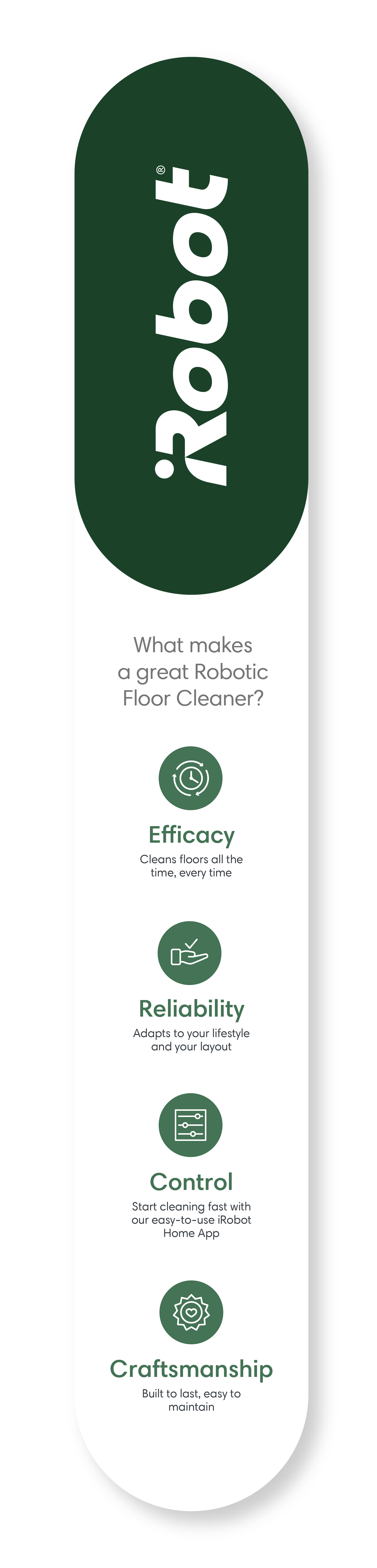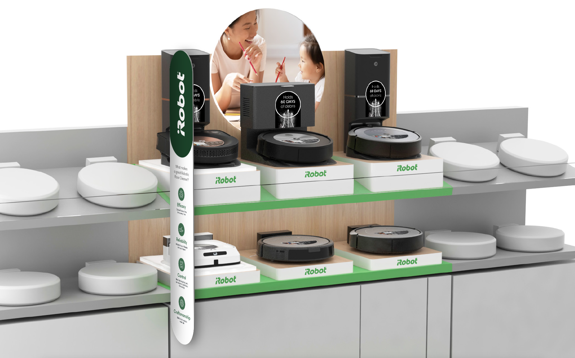 The first step was creating new icons to represent iRobot’s 4 cleaning pillars. These pillars define what makes a Roomba the best of the best. These icons were then applied to each of the merchandising assets.