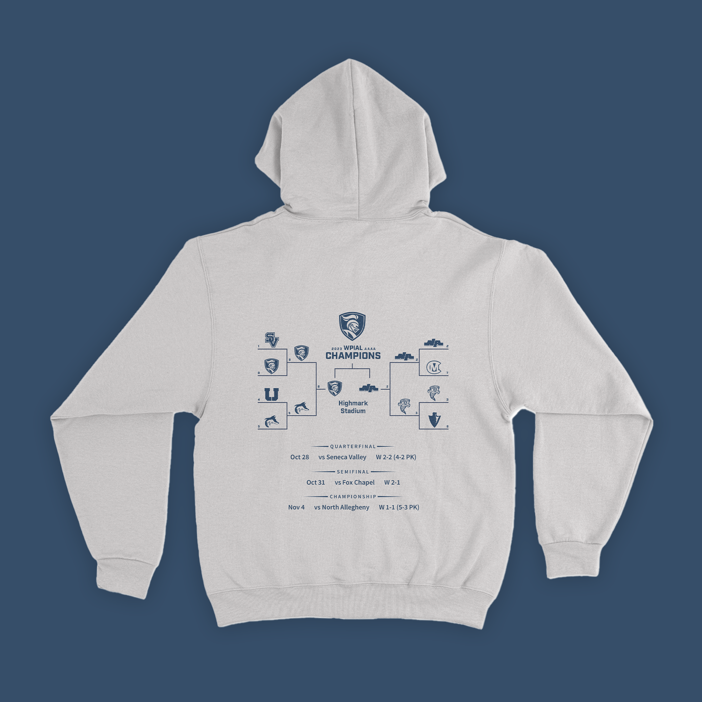 From 2021 to 2023, I designed the team posters, game programs, sponsor cards, and senior banners for the Norwin High School Boys Soccer team. In 2023, I designed “spirit-wear” to celebrate the team’s WPIAL championship win. Players, coaches, and parents were able to hold on to these keepsakes as reminders of a fun, successful soccer season.