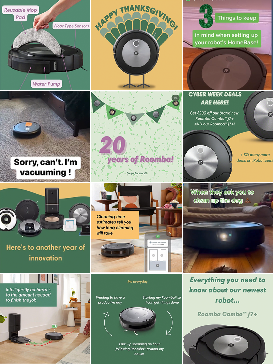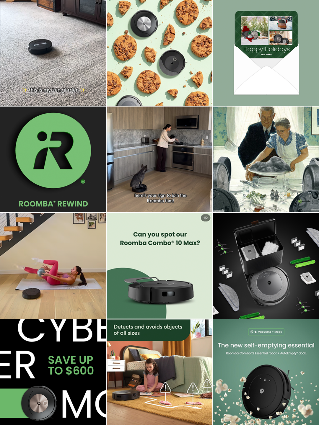 iRobot’s organic social channel was deprioritized in 2023, resulting in little-to-no engagement across platforms. In mid-2024, I took on the role of art directing our new social media team in efforts to re-establish the brand presence in social media, increase user-engagement, and streamline iRobot’s visual identity within this space.